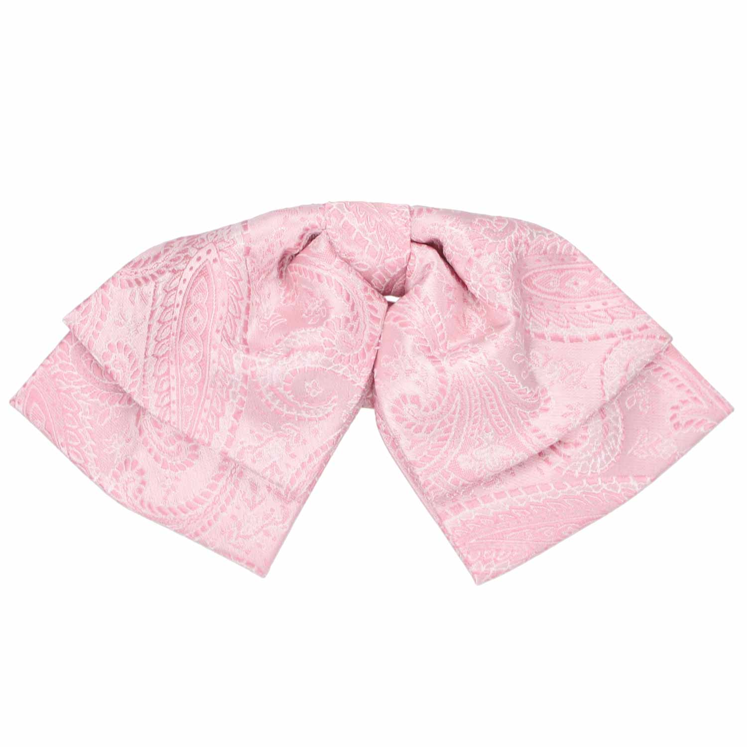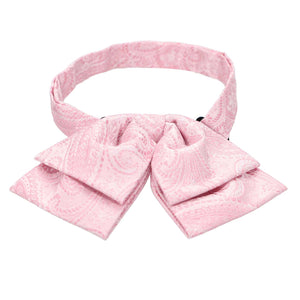 Exclusively ours! A pre-tied, floppy bow tie in a classic, pale pink paisley pattern. The band collar adjusts to fit most men and women. Suited for matching women's uniform wear or men's vintage-inspired attire.