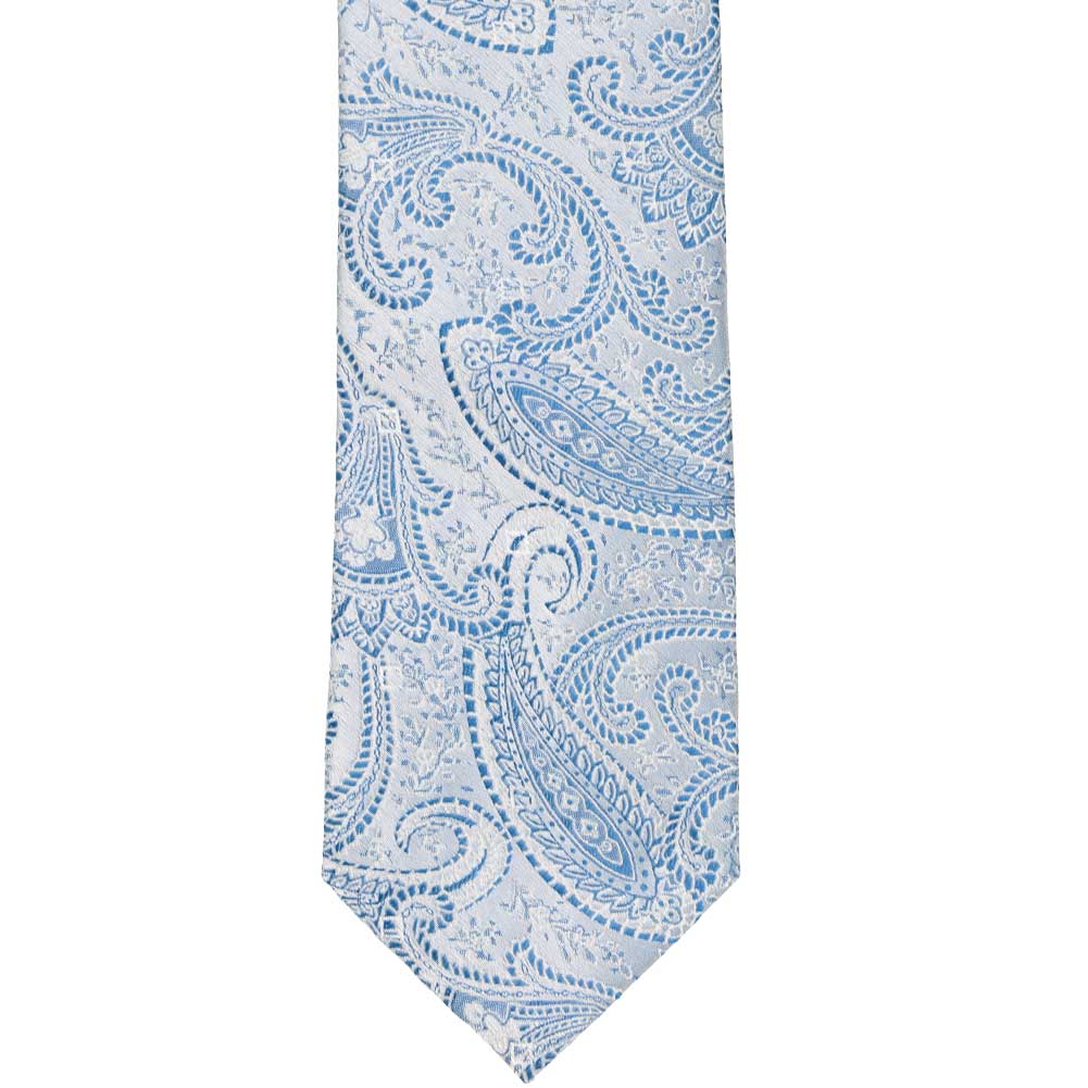 This pastel blue tie is everything you want in a wedding tie. We selected this pattern because it's timeless and elegant, so it will look stylish today and in 10+ years. The pastel blue color isn't too bright, so many of our customers are pairing it with other shades of steel and dusty blue. You'll love how it looks with navy blue or gray groomsmen suits.