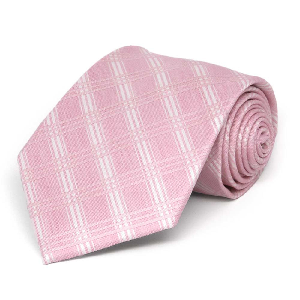 Here it is: A clean and simple pink plaid extra long tie. Just right for spring and summer formal events, or chic everyday wear. When wearing a suit, you have to try it with gray or navy blue.