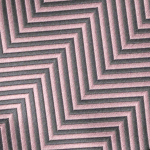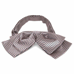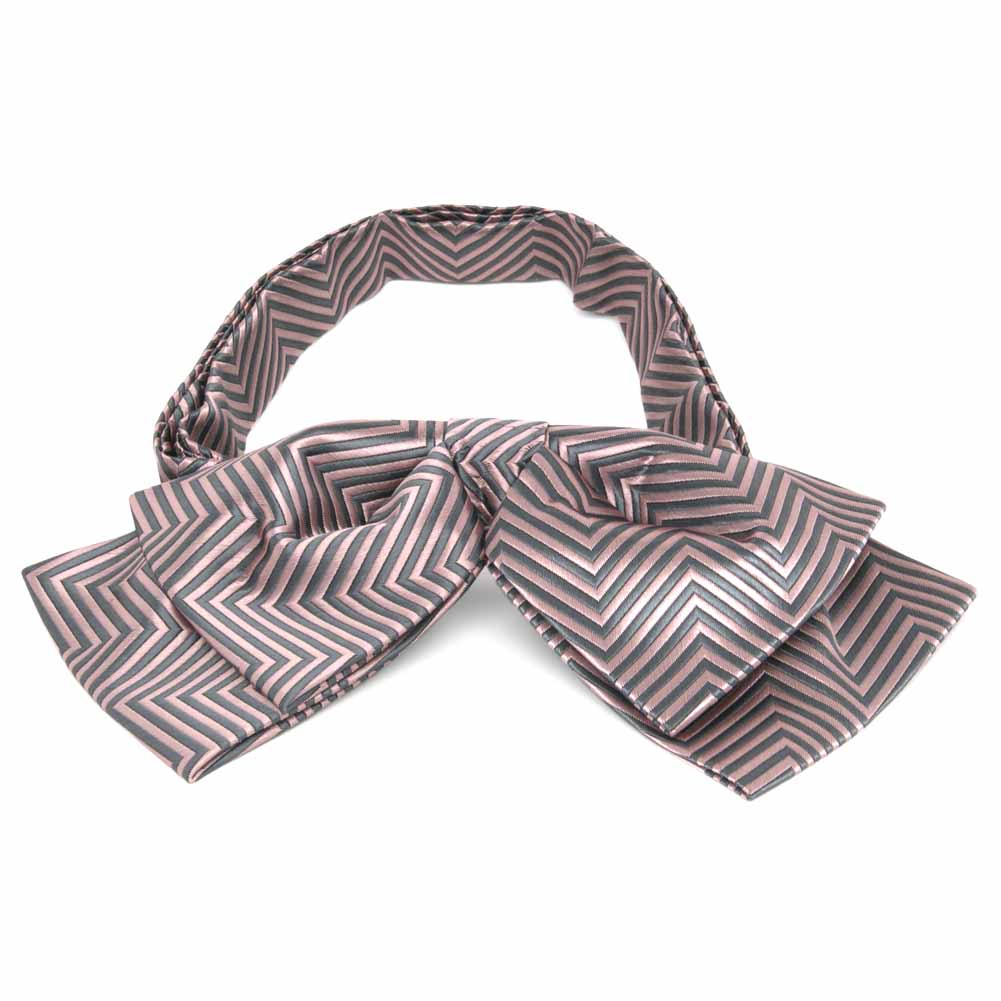 Exclusively ours! A pre-tied, soft pink floppy bow tie in a trendy, skinny chevron stripe design. The band collar adjusts to fit most men and women. Suited for matching women's uniform wear or men's vintage-inspired attire.