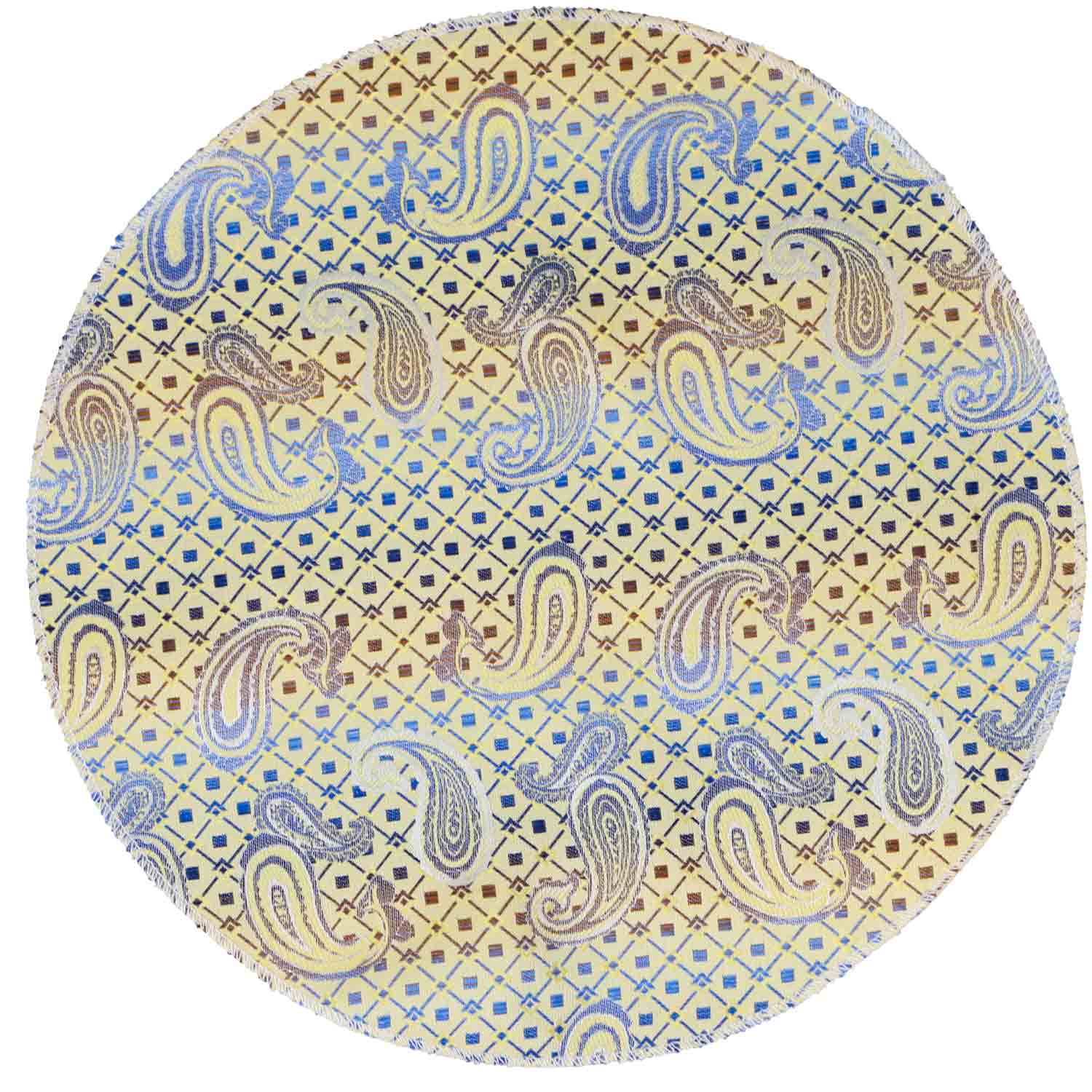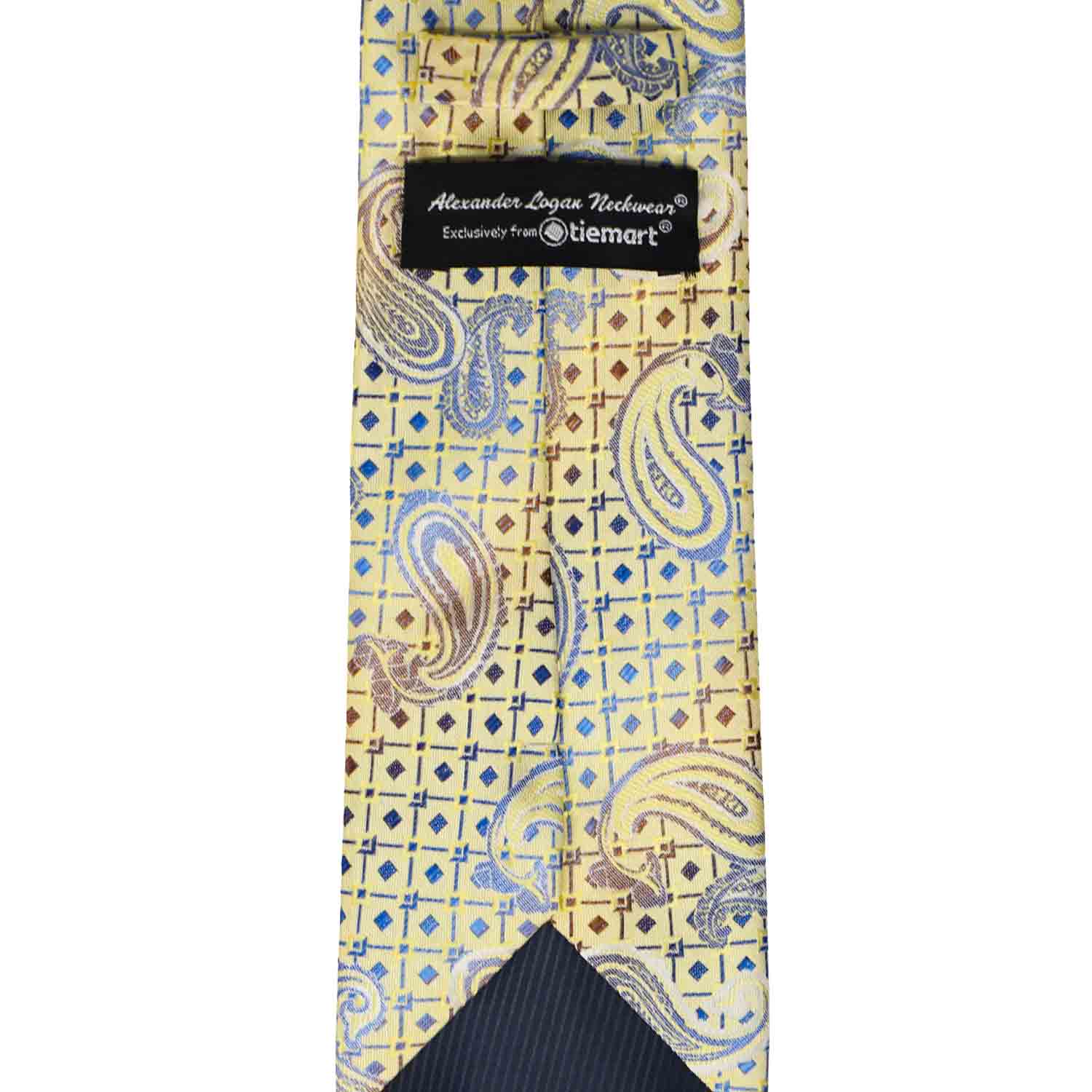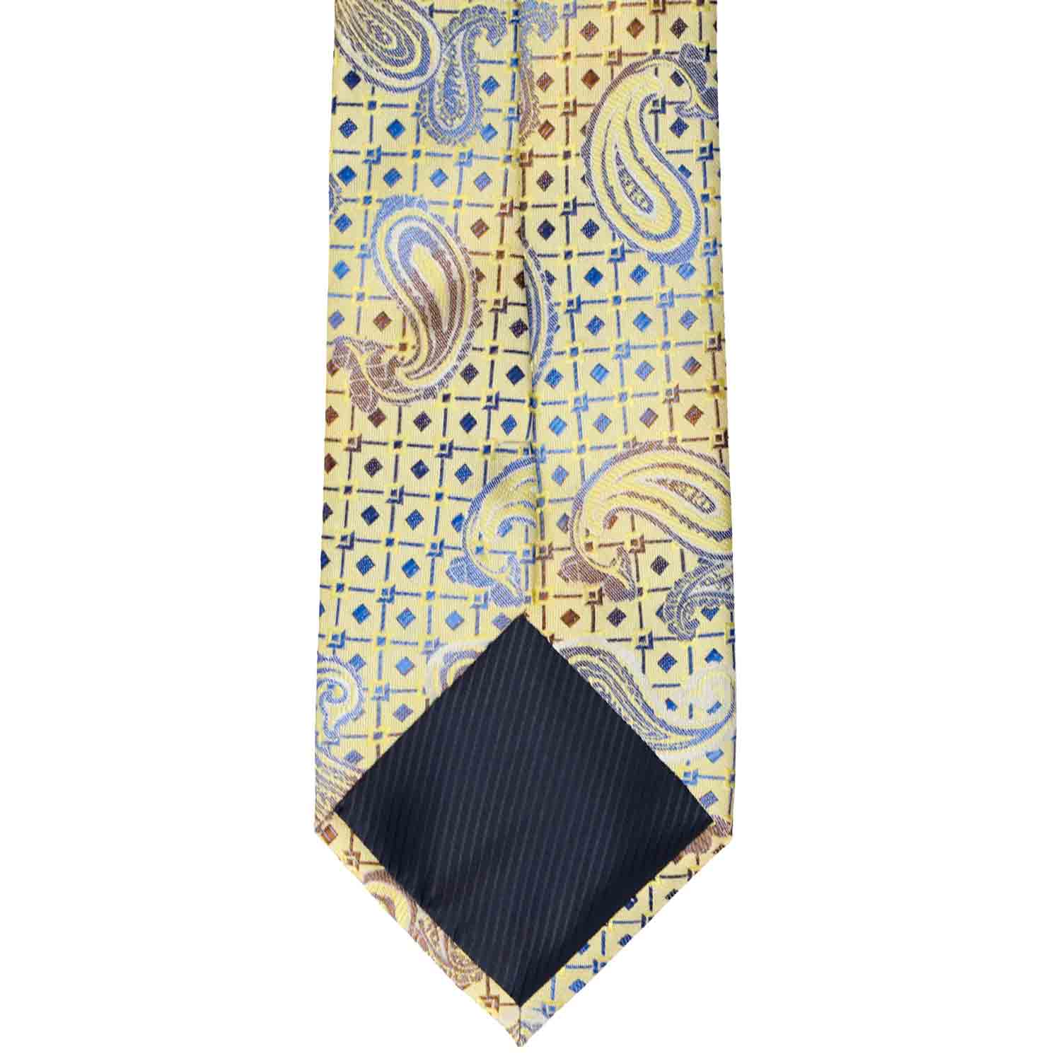 You're going to love the details in this tie. The paisley is intricate and scattered across a geometric background. The color is mainly yellow, but there are some touches of blue, as well. We really like this one for the office and it works well in every season.