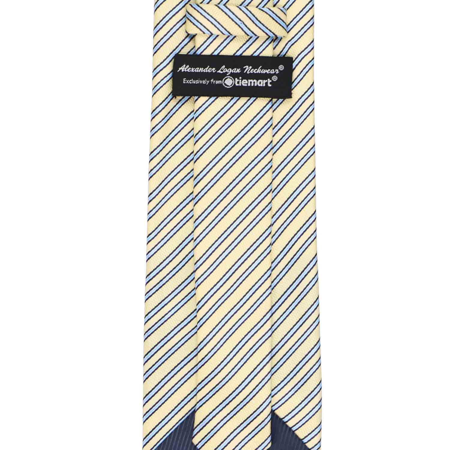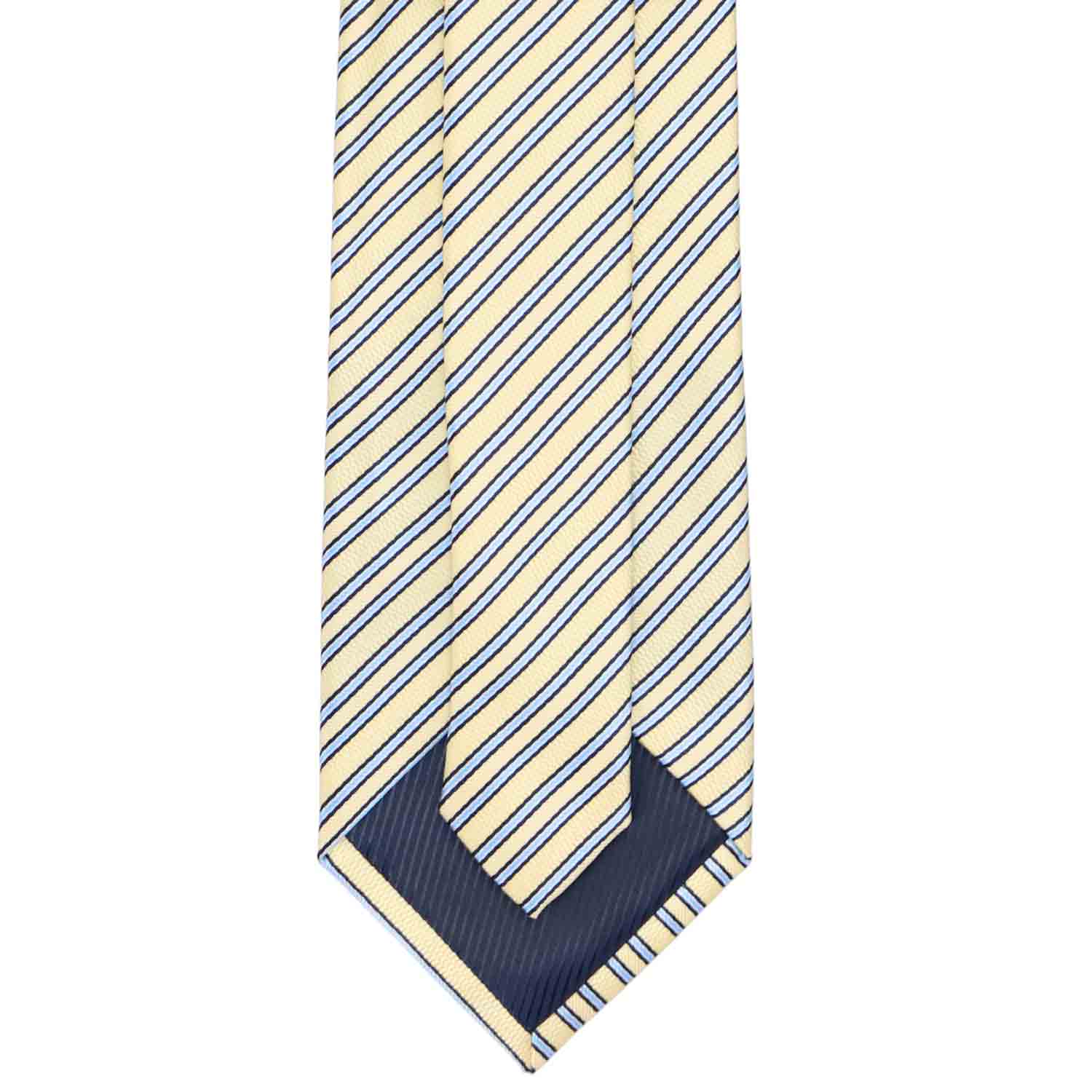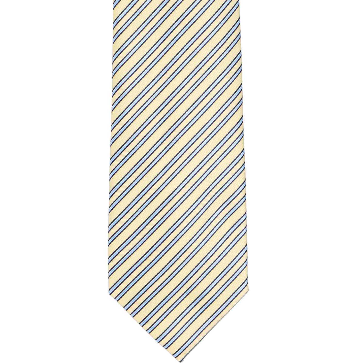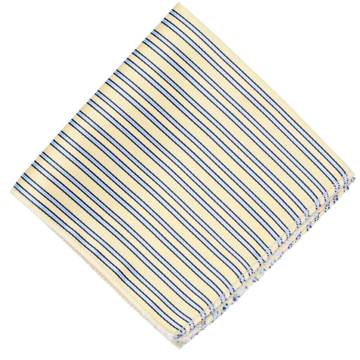 Let everyone know that spring has arrived with this yellow and blue woven striped tie. Perfect for your Easter attire. We suggest pairing this tie with a light tan or navy blue suit. A matching pocket square is included for formal occasions. Wear it to work with khakis and a white oxford for a clean cut look.