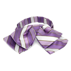 Exclusively ours! A pre-tied, thistle purple floppy bow tie in a detailed textured stripe design. The band collar adjusts to fit most men and women. Suited for matching women's uniform wear or men's vintage-inspired attire.