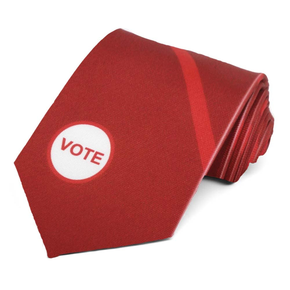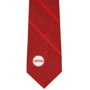 Get ready for election day in this red striped tie, featuring a VOTE sticker emblem at the base of the tie. You'll show support for your party in the Republican red color, while also encouraging others to vote.