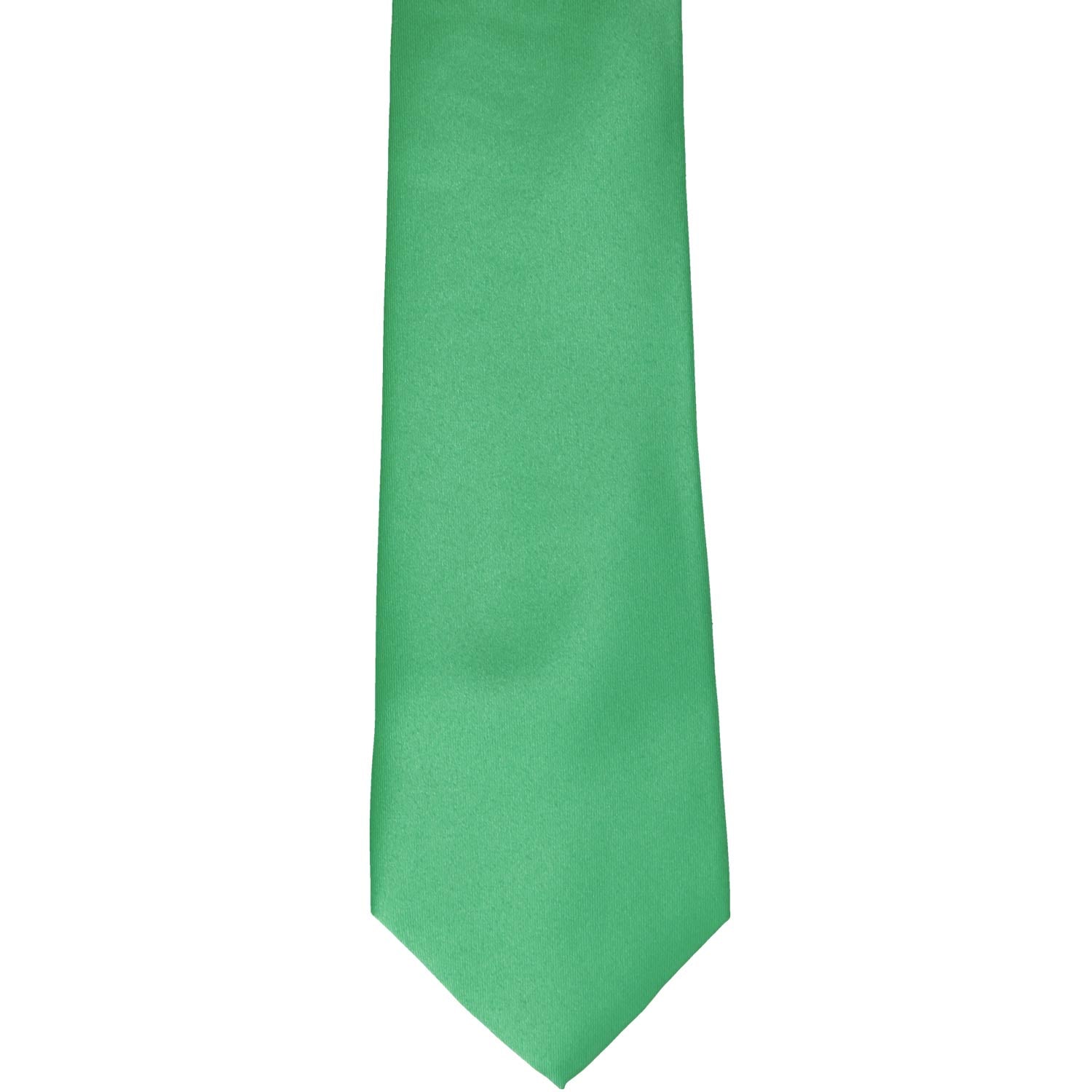 Round out his wardrobe with this handsome emerald green boys' necktie. This tie is a great way to add color for holidays, school uniforms, or team events without being overly bold. He'll look polished and feel proud when he ties the tie himself, completing a truly authentic, grown-up look.