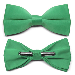Wear a perfect bow every time with this emerald green clip-on bow tie. This pre-tied bow tie features a heavyweight clip that discretely attaches to either side of your shirt collar material for a secure fit. One size fits all, regardless of neck size. Has a soft, satin finish. Add a matching emerald green pocket square for a refined look.