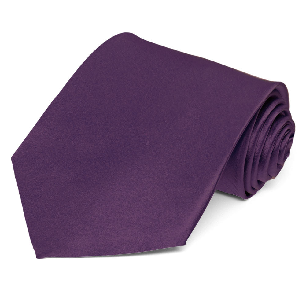 This dark and romantic eggplant purple tie is a favorite for weddings. The extra long length is perfect for the big and/or tall men in your wedding party. The tie is soft to the touch and made from 100% silk. It measures 3.25-inches at the widest point and 63-inches from tip to tip.