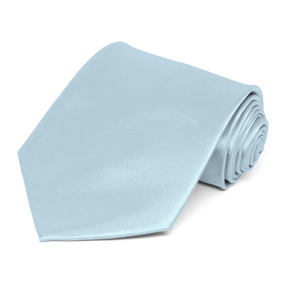 This pale blue extra long tie is ideal for big and/or tall men. Measuring 63-inches long, it boasts an additional 6-inches over a standard-sized necktie. These extra long, solid color ties are made of 100% polyester and feature an attractive, shiny satin finish. Add a matching pocket square for a refined look. Part of our Alexander Logan Neckwear® collection.