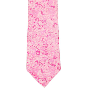 Jump on the floral trend with a tie that's sized just right to fit you! This extra long floral tie in pink is the one to wear for modern wedding attire or stylish spring occasions (think Easter). The pattern is a low-key take on bold florals, which will keep it timeless. The combination of pink and fuchsia shades makes it easy to match to bridesmaid dresses. Pair it with navy blue or gray groomsmen suits, or our pink or bright fuchsia skinny suspenders if you want a more trendy look.