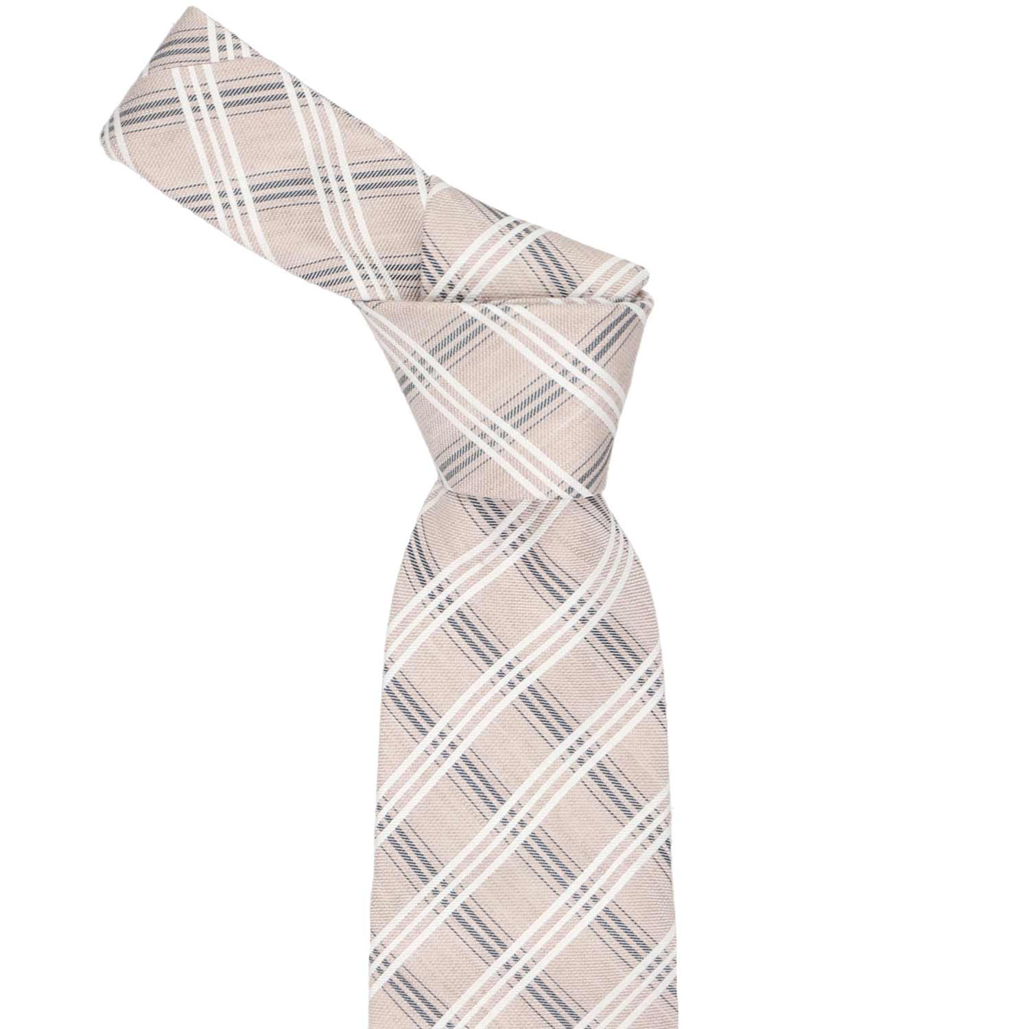 Beige Cabinet Plaid Linen/Silk Necktie