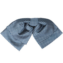 Exclusively ours! A pre-tied, floppy bow tie in a timeless, dark blue grain pattern. Features a low-key, circle like design. The band collar adjusts to fit most men and women. Suited for matching women's uniform wear or men's vintage-inspired attire.