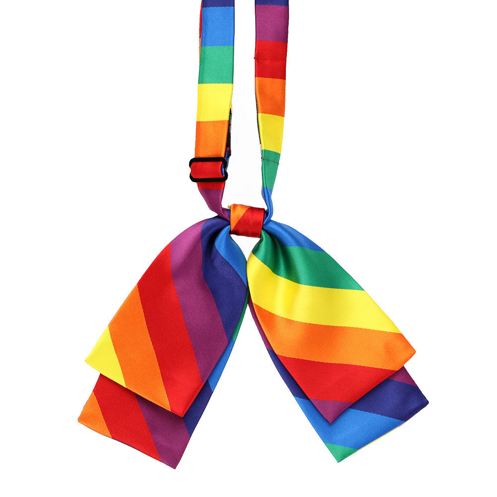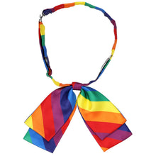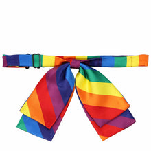 Make a statement in this fun and colorful rainbow striped floppy bow tie. It features vivid, ROYGBIV colors in 0.75-inch stripes.