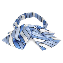 Exclusively ours! This pre-tied, wave blue floppy bow tie features a detailed, textured stripe design. The band collar adjusts to fit most men and women. Suited for matching women's uniform wear or men's vintage-inspired attire.