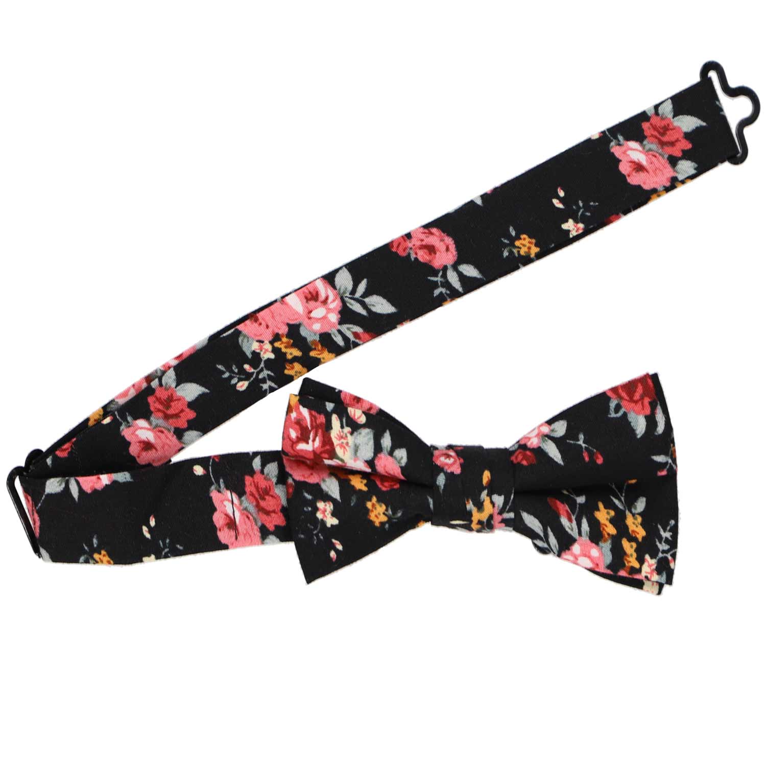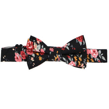Planning a wedding? This coral and black floral bow tie is a customer favorite for ring bearer attire. The pattern is elegant and will look great with a boys' black suit. Keeping things more casual? Pair this bow tie with kids' suspenders in coral or tan instead.
