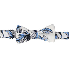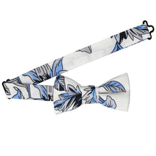 Say aloha to this tropical-inspired, boys' bow tie. It features a gorgeous blue, white and gray floral design. Can't you just picture your ring bearer wearing this one at your destination beach wedding?