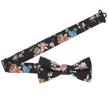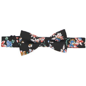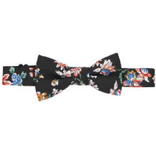 Add that wow factor to your little guy's look with this black floral bow tie. The flower pattern is colorful, but the black background keeps things toned down. It's perfect for Easter, school pics, ring bearers or just because.