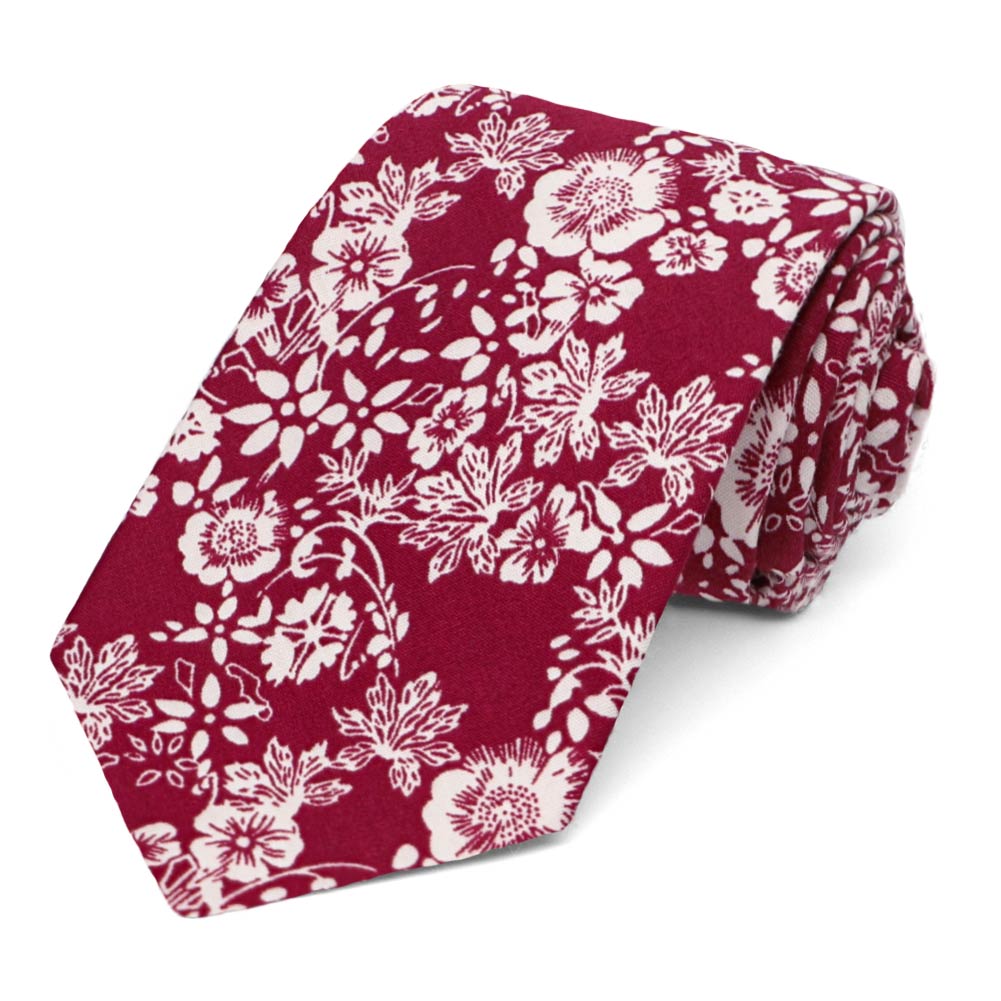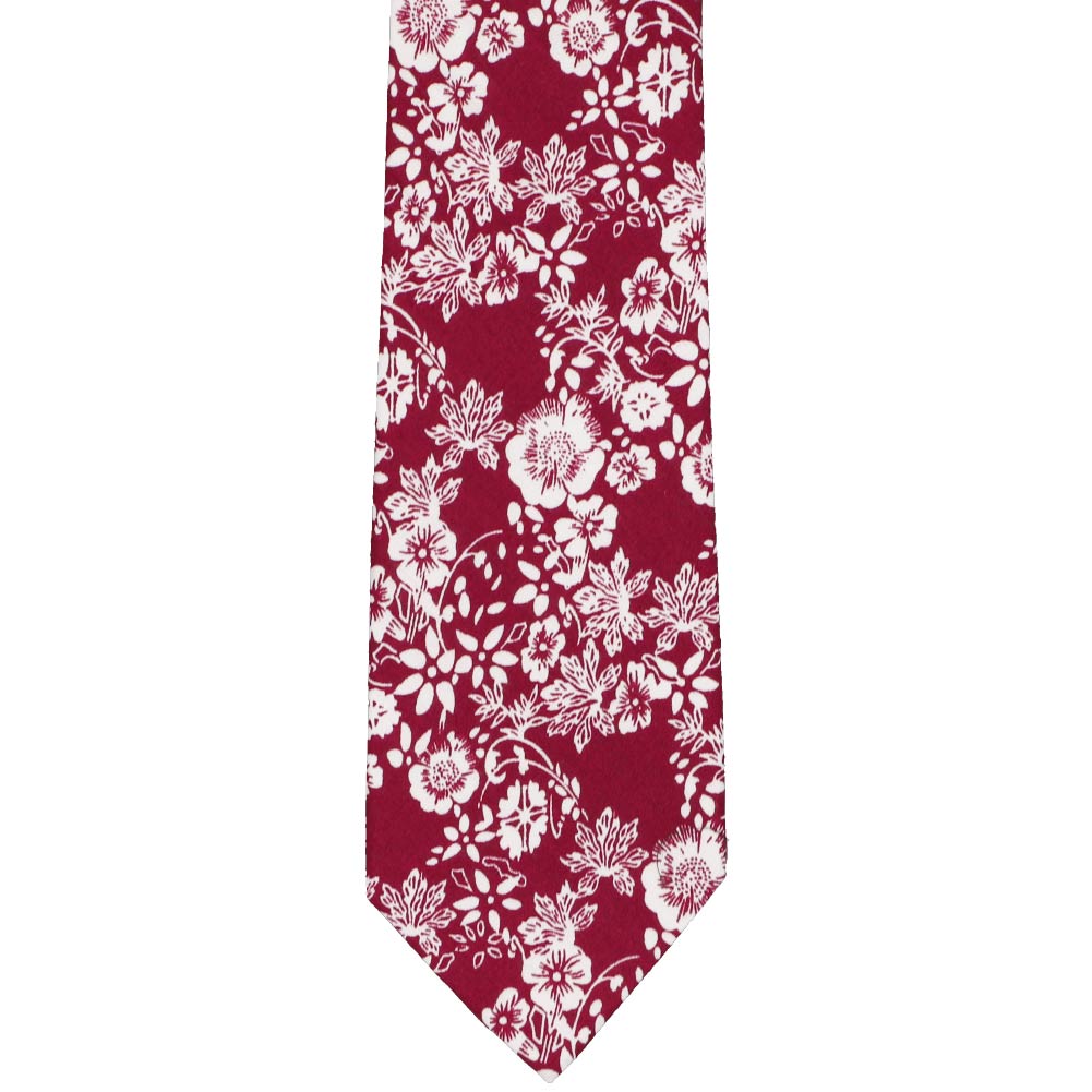 This burgundy floral tie is simple yet stunning. It features a burgundy and white floral pattern on soft cotton material. This is the perfect floral wedding tie for your groom and groomsmen, but it's a great pattern to wear casually in fall and winter, too. Pair this elegant tie with a navy blue or gray suit for a polished, timeless look that’s sure to impress on your special day.