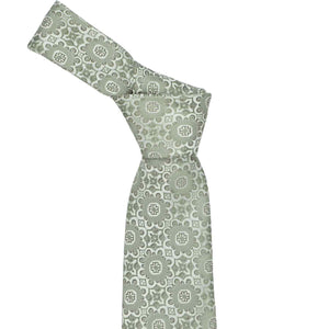 This extra long tie is a wedding favorite! The soft minty green and abstract floral design make it the perfect complement to bridesmaid dresses, effortlessly tying your wedding look together. Despite its unique pattern, it has a timeless quality that will keep it—and your wedding photos—looking stylish for years. It pairs well with virtually any suit color, but your groomsmen will look especially sharp when wearing it with gray or navy blue suits.