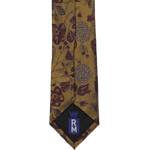 Put on this old gold floral tie this fall. The uniquely curved floral design mimics the style of paisley. The tie features a slightly iridescent finish that's not too reflective or flashy, just enough to get you noticed! Whether you're taking that big walk down the aisle or keeping it formal for your 9-5, you'll turn heads when you pair this tie with a fitted suit. The floral design adds a subtle hint of burgundy and lilac, for an unexpected yet classic combo.