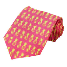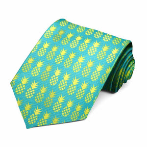This sweet novelty tie features a colorful pineapple design, available in your choice of two colors: Pink and yellow or aqua and yellow. Both color options have a healthy amount of pineapples scattered across the men’s tie. Try wearing either one during warm weather months or on your next tropical vacation.