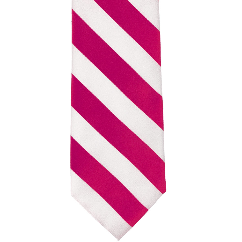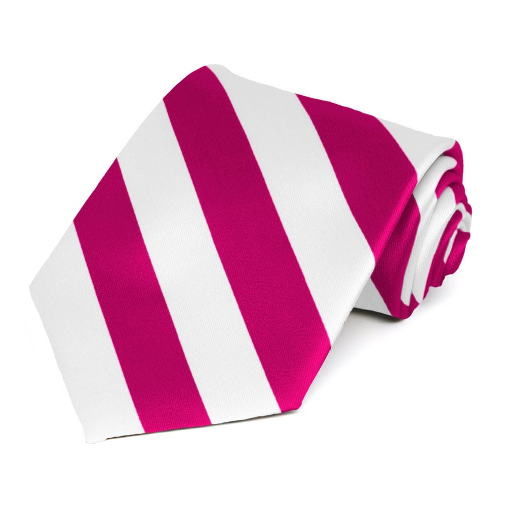 For an elegant wedding look, this fuchsia and white striped tie is the one! Coordinate your entire wedding party or offset the groomsmen from the groom. It's an obvious choice for pairing with a black suit, but can work well with a casual button down, slacks and suspender combination, too. Purchase our solid color fuchsia premium pocket squares to top off everyone's look.