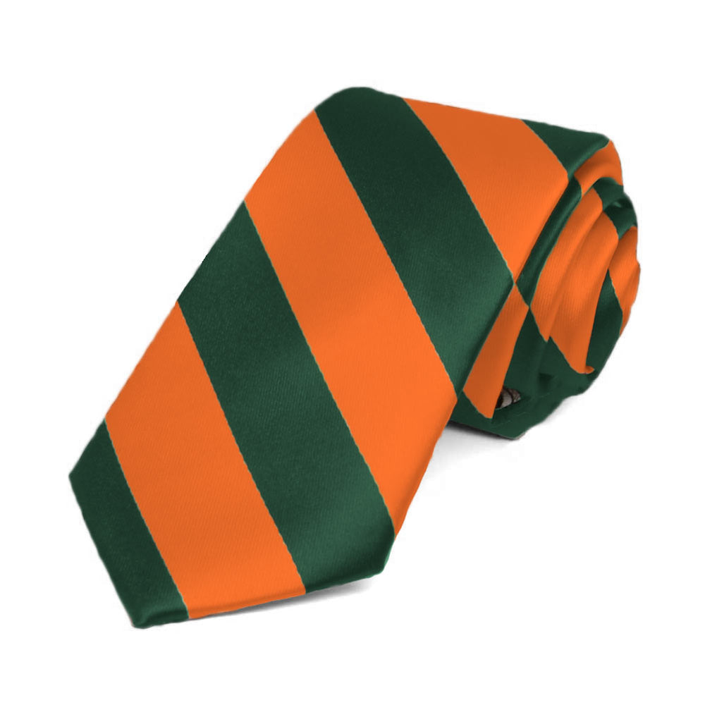 Florida Orange and Dark Green Striped Slim Tie, 2.5" Width