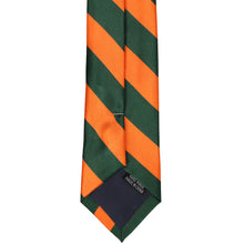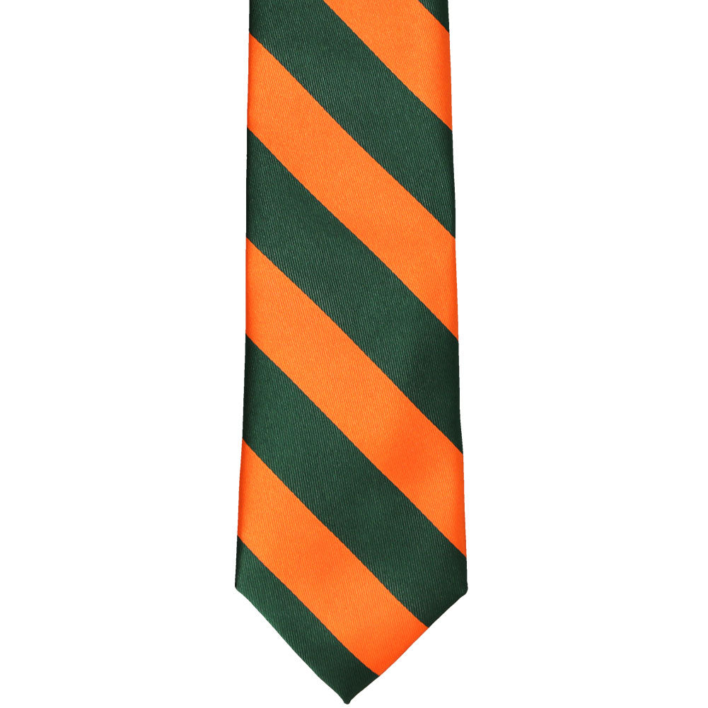This Florida orange and dark green striped tie is a top pick for everyday spirit or uniform wear. It's cut to a modern, 2.5-inch slim width. Crafted from a heavyweight woven material with a smooth, satin finish.