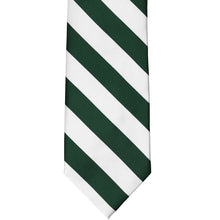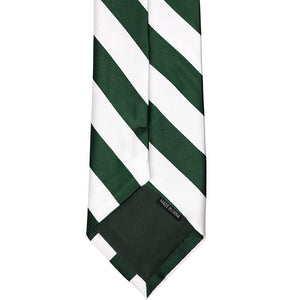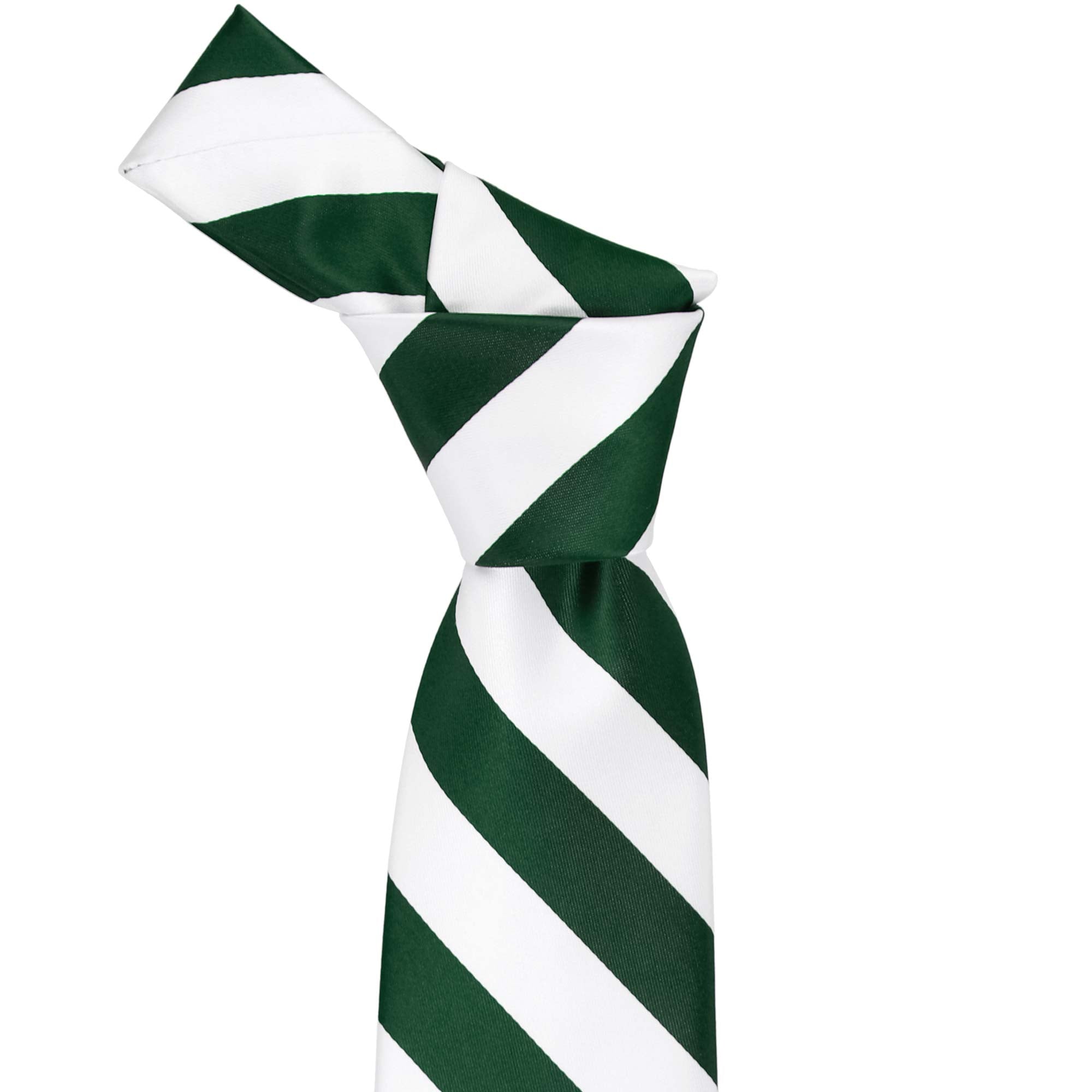 Whether you're sporting your school colors or representing your favorite team, you'll look sharp in this hunter green and white striped necktie. The two-color stripes are a classic, not too wide or too skinny width. Just right for a button down shirt and slacks school uniform or with a suit for the office. Try our other styles of neckwear in this striped combo, too. We offer bow ties, socks, skinny ties, and self-tie bow ties in men's sizes.