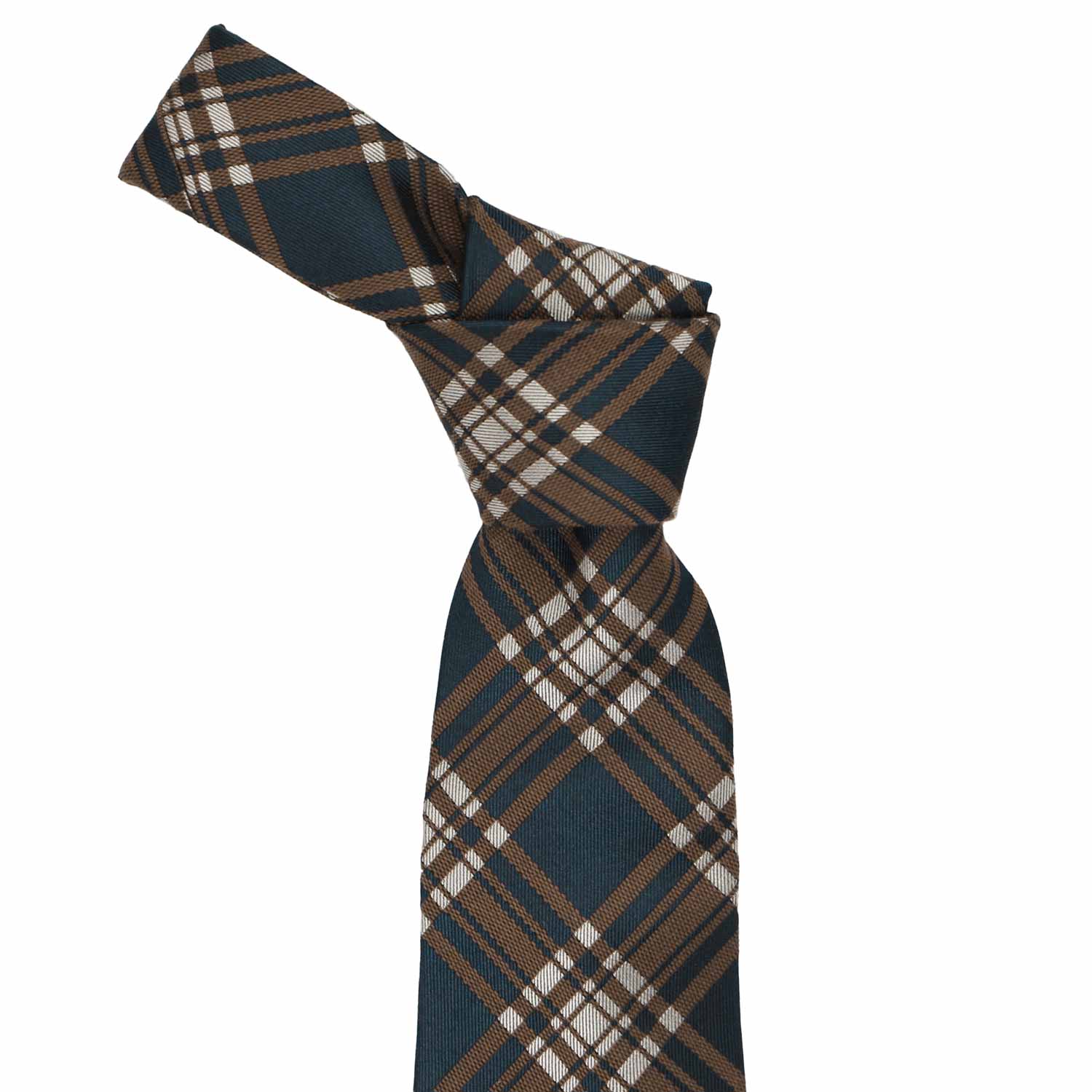 Need a traditional tie for work? This one is a classic! It features a smart navy blue and brown plaid pattern. While the plaid design is slightly oversized, it still has a sophisticated feel that's office appropriate. Make it pop and pair it with a navy blue suit.