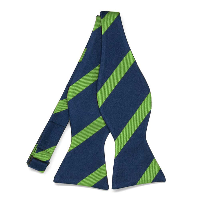 Navy Blue and Grass Green Striped Cotton/Silk Self-Tie Bow Tie