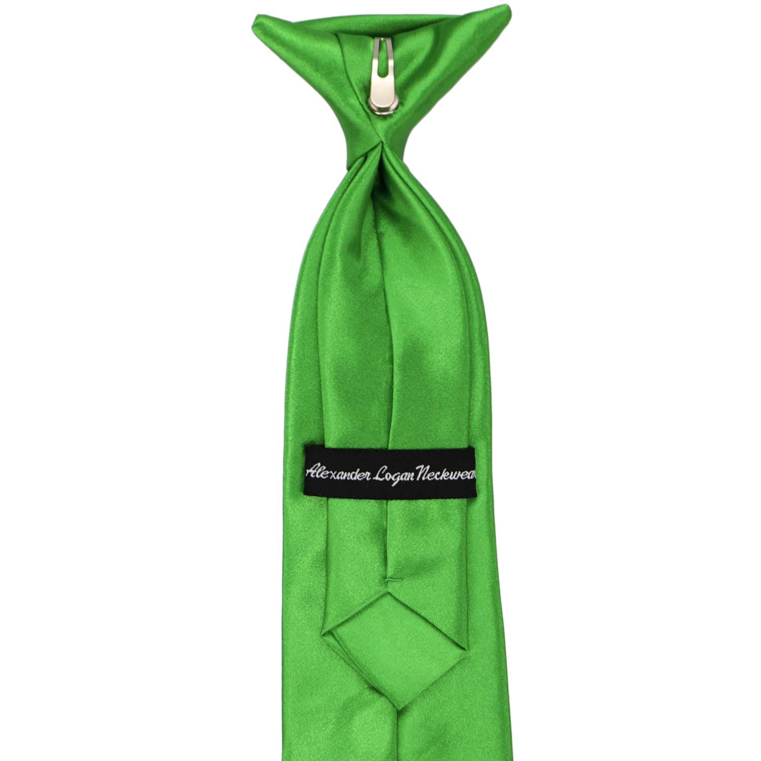 This baby-size grass green clip-on tie is easy to use and sized just right for your little guy. Available in an 8-inch length, this pre-tied tie is sized to fit most boys up to 2-years old. The clip on the tie simply attaches to the top of the boy's shirt, without any material around the neck. Matching adult sizes and styles available for purchase.