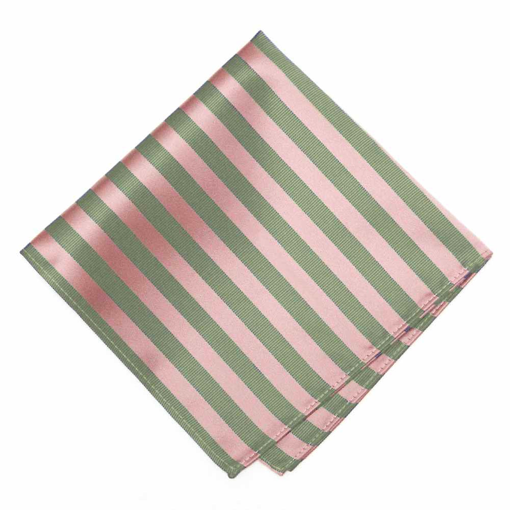 What luck! We designed this dusty pink and peridot striped pocket square to match today's wedding colors. The stripes alternate between a smooth satin and woven ribbed design. The result is classy, without being too bold. Add the matching neckties and/or bow ties to your wedding party's attire for a coordinated look.