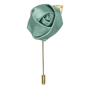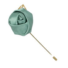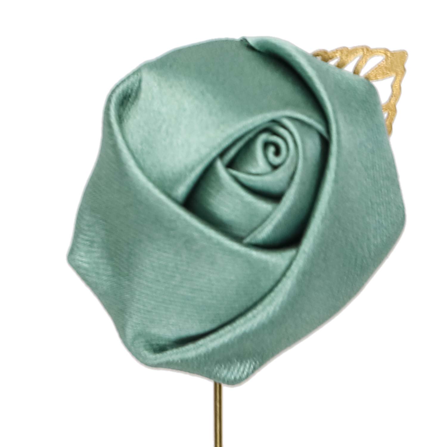 Get ready to fall in love. This lapel pin is part of our premium line of ties and accessories. To ensure it matches our ties, we made the floral puff from the same heavyweight material. The fabric has a gorgeous sheen finish to it, but it's not too shiny either. The lapel pin is accented with an elegant gold-tone leaf. A matching metal pin is easy to secure to the groomsmen's jacket, vest or suspenders.