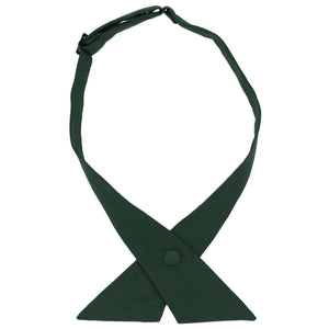 Complete your group or staff look with this hunter green crossover uniform tie. The crossover tie is a popular choice for women's uniform wear. This one is made from durable material with a matte finish and slightly textured feel. A fabric-covered snap keeps the tie securely in place for an always-professional look.