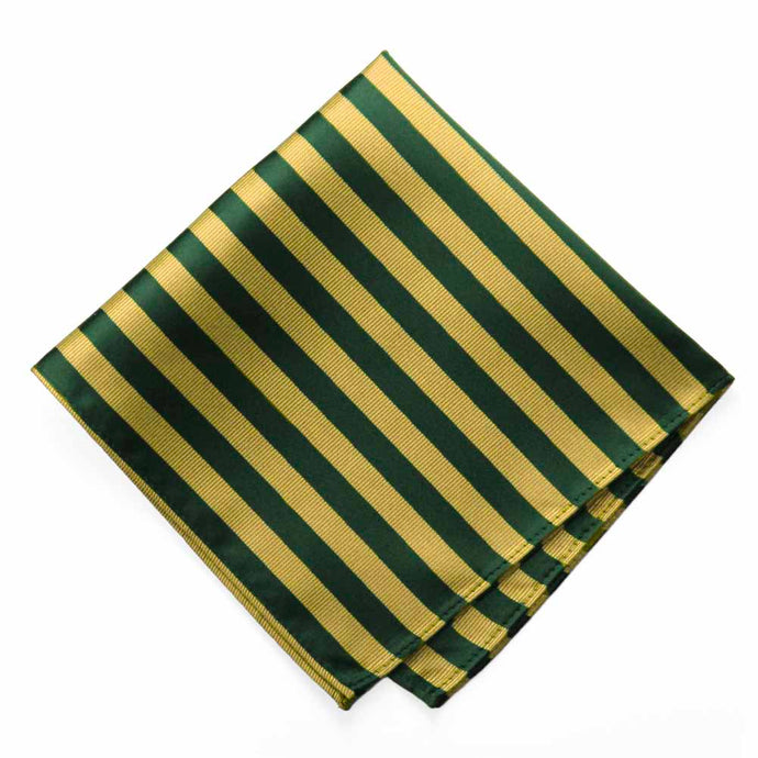 Hunter Green and Gold Formal Striped Pocket Square