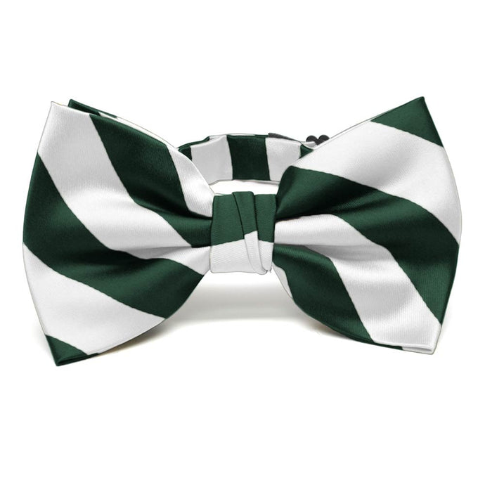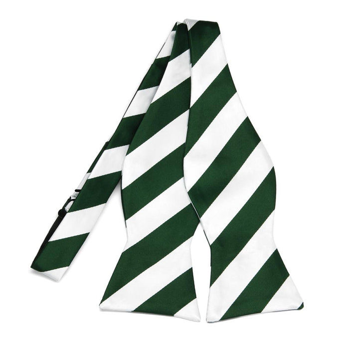 Hunter Green and White Striped Skinny Tie, 2" Width