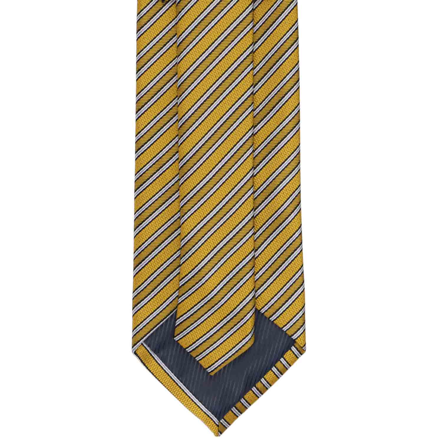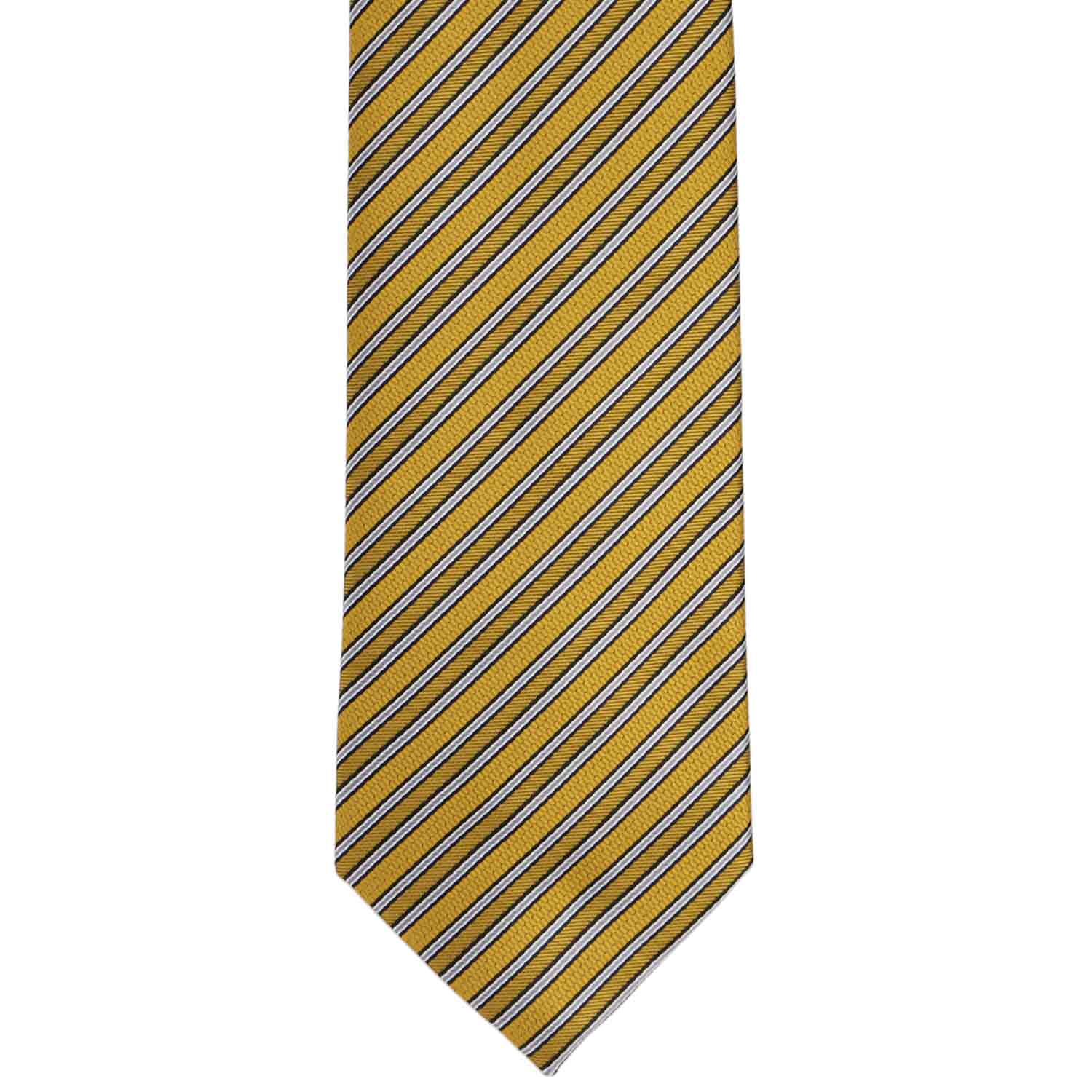 Look like a million dollars in this stunning gold on gold tone striped tie. Add this tie and included pocket square to your power suit and make a bold impression!