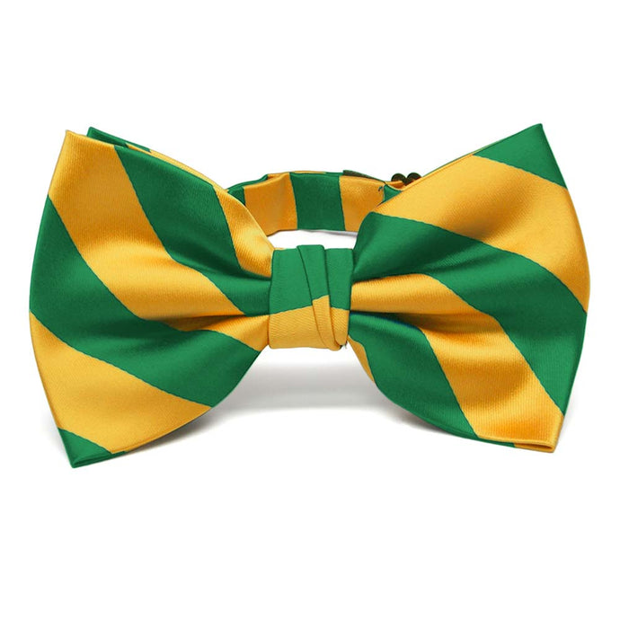 Kelly Green and Golden Yellow Striped Self-Tie Bow Tie
