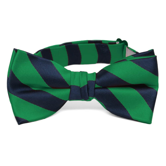 Boys' Kelly Green and Navy Blue Striped Bow Tie