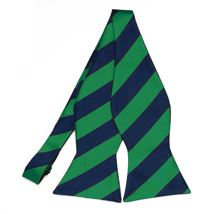 Kelly Green and Navy Blue Striped Self-Tie Bow Tie