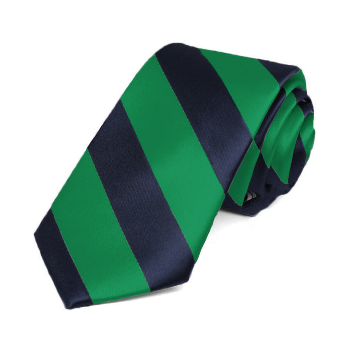 Kelly Green and Navy Blue Striped Skinny Tie, 2" Width