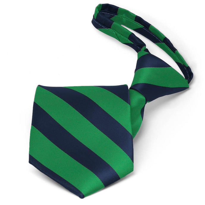 Boys' Kelly Green and Navy Blue Striped Zipper Tie