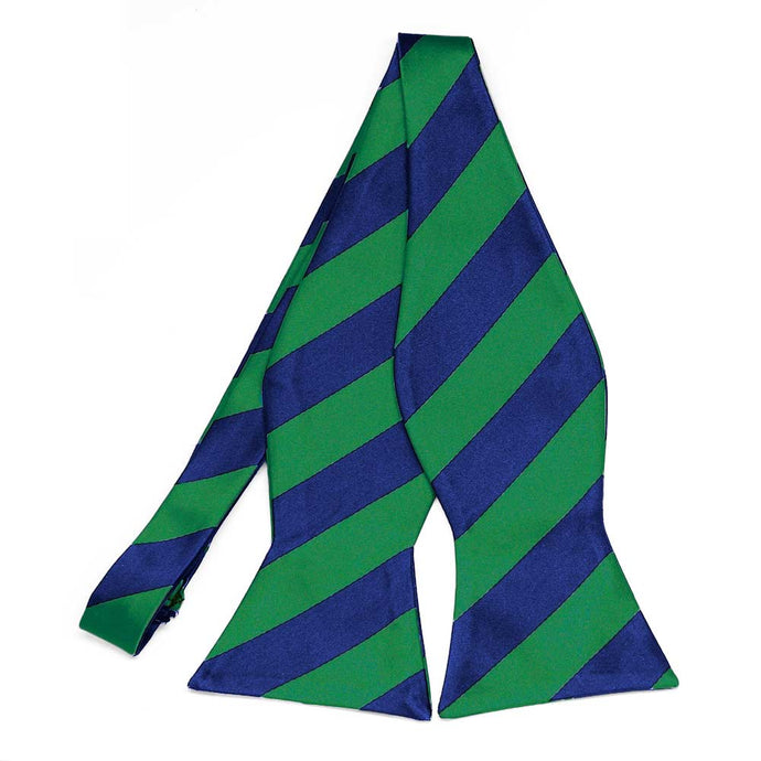 Kelly Green and Royal Blue Striped Self-Tie Bow Tie