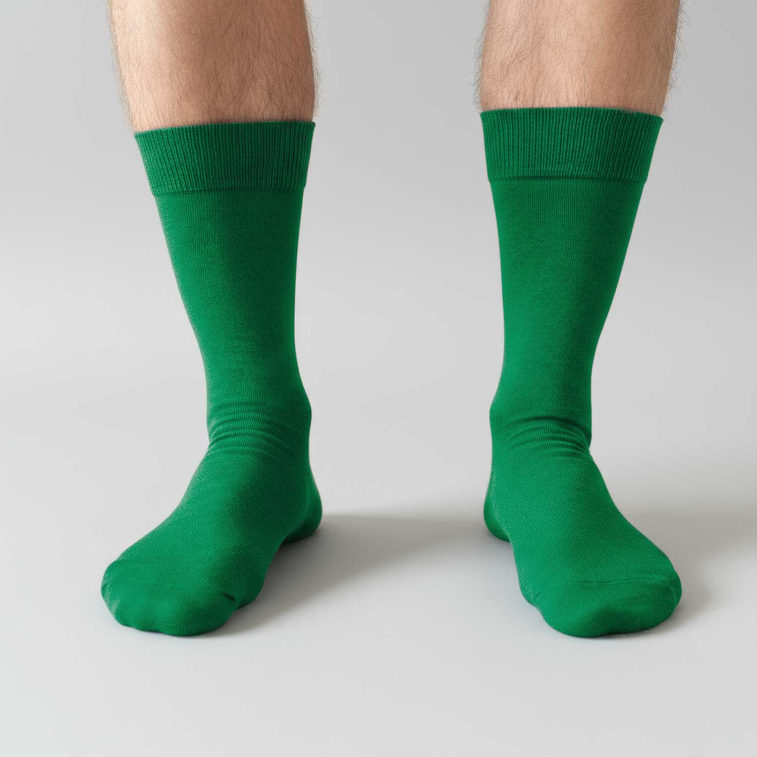 Have some fun with your dress socks and try a pair in kelly green (aka your standard Christmas green color). These socks are a plain solid style in a crew height. Our customers are wearing these to work, weddings and around the house as everyday socks. They're also great for matching school and sports team colors.
