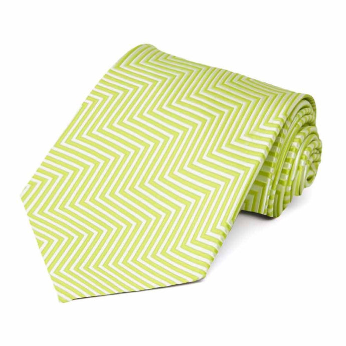 Apple Green Kimberly Chevron Striped Slim Necktie, 2.5" Width