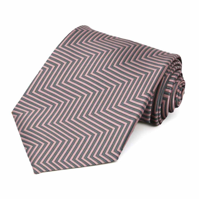 Soft Pink Kimberly Chevron Striped Extra Long Necktie