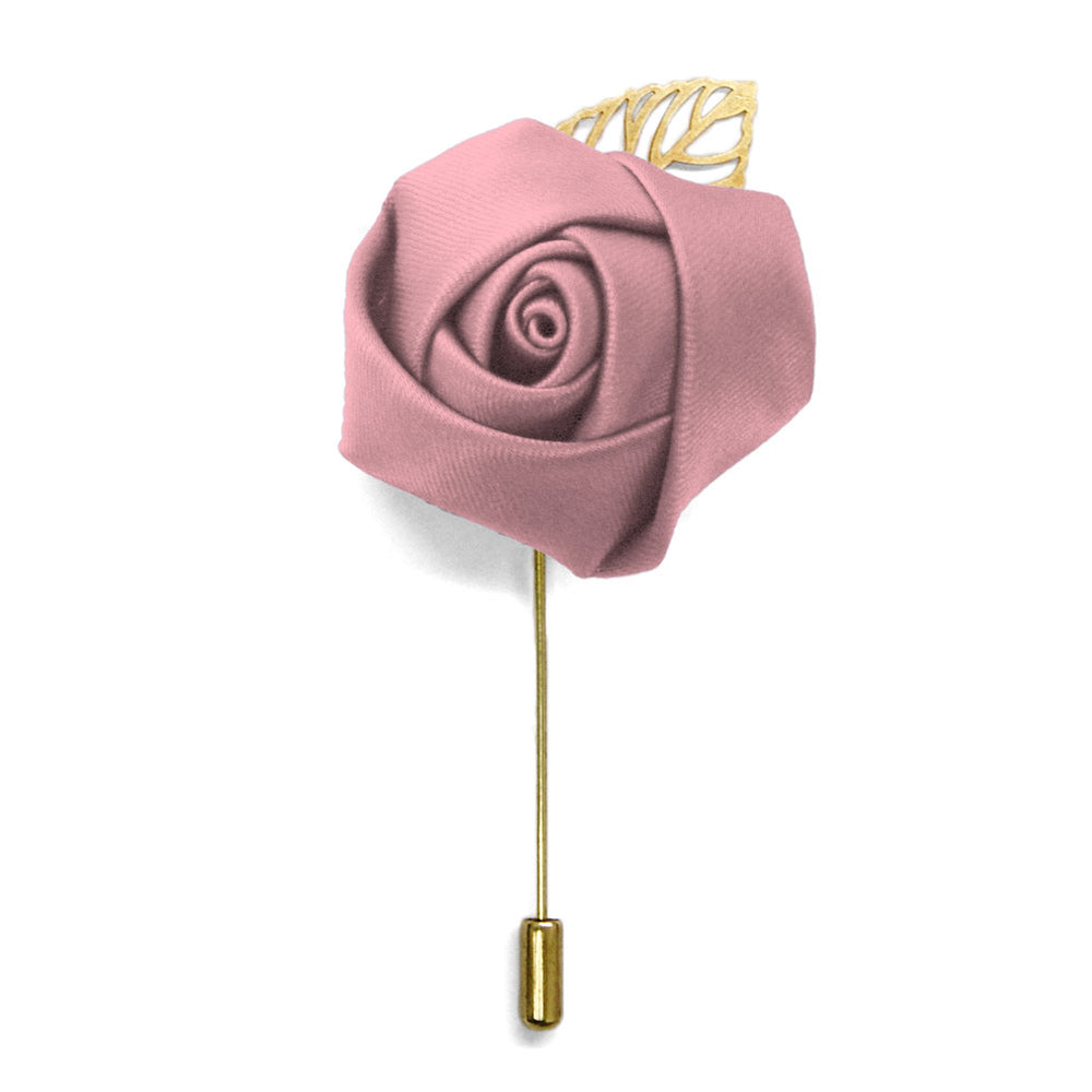 Complete his wedding day look with this pink champagne flower lapel pin. These lapel pins are a budget-friendly alternative to the boutonnière. The floral puff is made from the same material as our premium ties and is accented with a gold-tone leaf. It secures to his jacket, vest or suspenders with a metal pin.