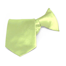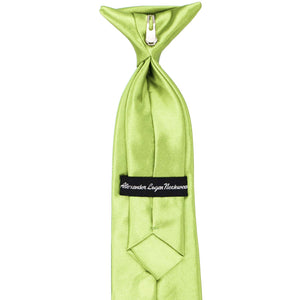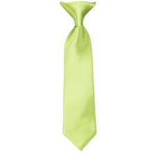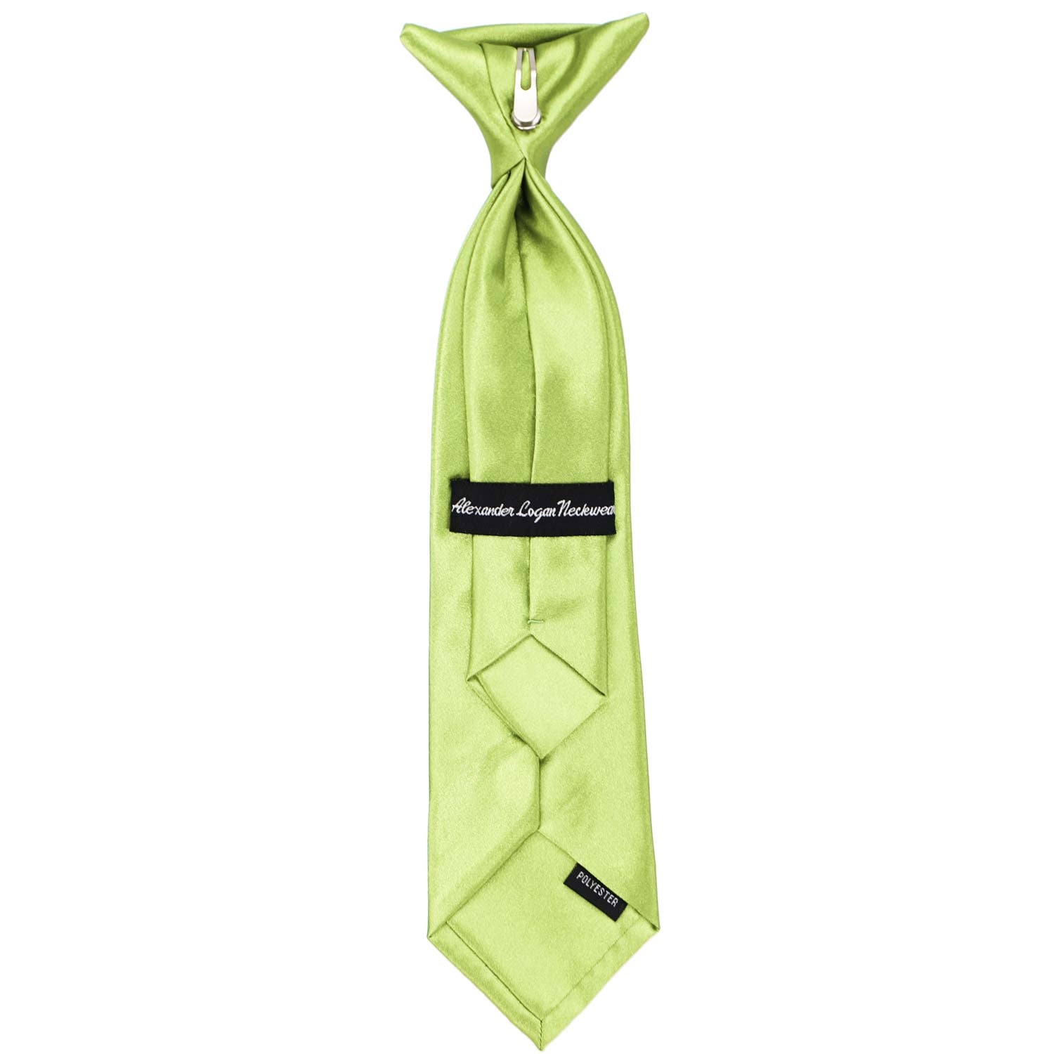This boys' lime green clip-on tie is available in an 8-inch, 11-inch or 14-inch length to fit most boys up to 10-years old. The pre-tied clip simply attaches to the top of the boy's shirt, without any material around the neck. Matching adult sizes available for purchase.