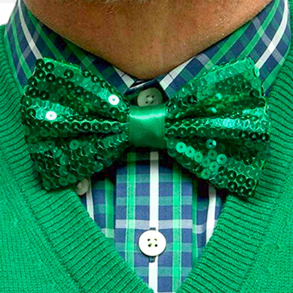 New Year's, Prom, theater or dance performances. Sparkle and shine in this special occasion bow tie. The kelly green, sequin-covered bow is kept in place with a matching satin center band. Pre-tied style with an adjustable band collar that fits most teens and adults.