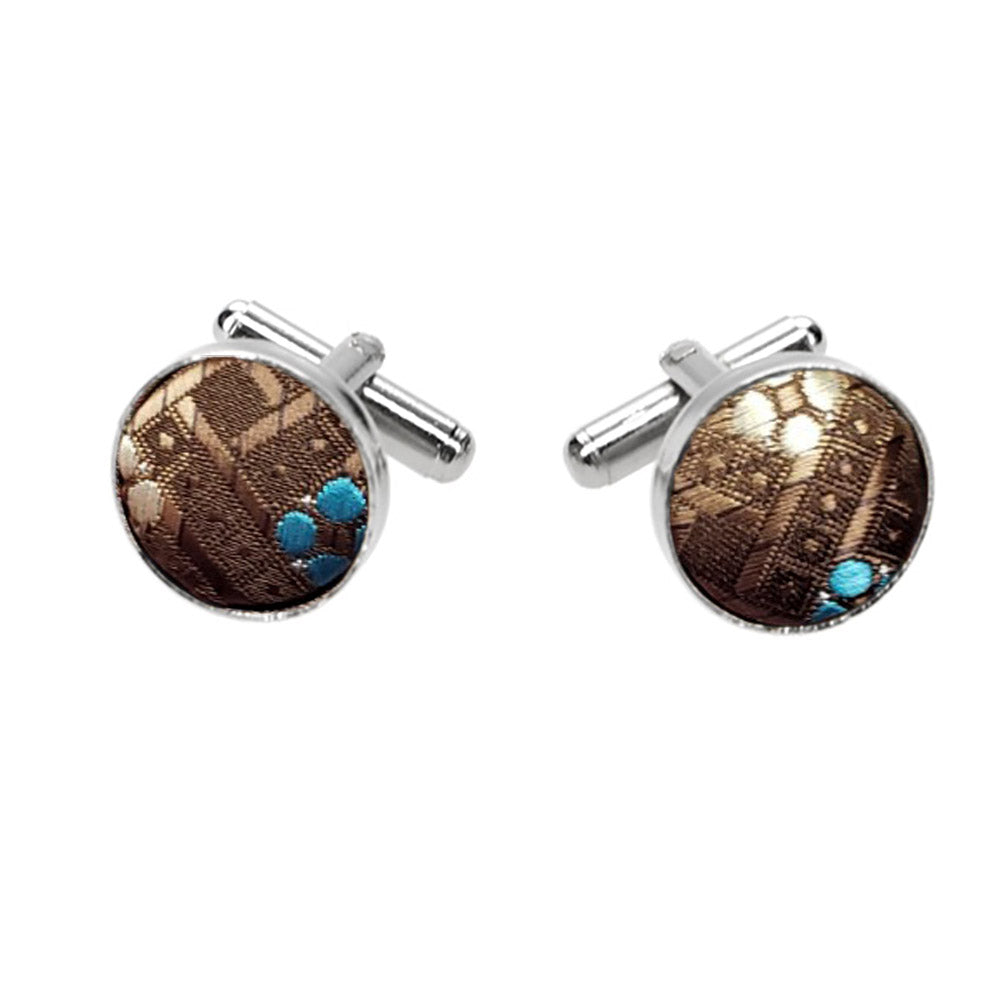 Brown and Turquoise Flower Pattern Fabric Cufflinks